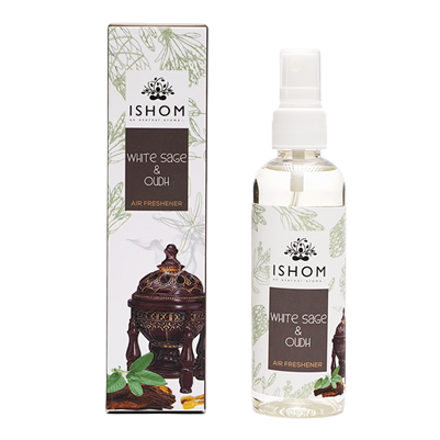 ISHOM White Sage-Oudh Spray blends white sage and oudh for a modern, smoke-free way to cleanse and purify your living space.